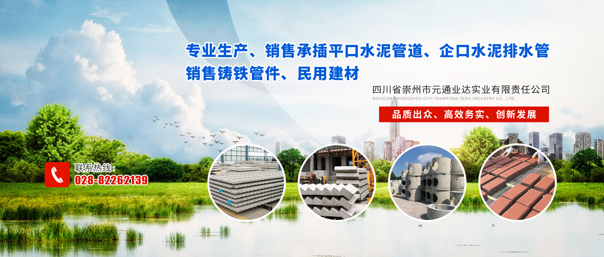 四川省崇州市元通業達實業有限責任公司是專業生產、銷售承插平口水泥管道、企口水泥排水管、銷售鑄鐵管件、民用建材的企業。自創辦以來,本著誠信經營的原則,積極進取、勇于開拓,經過多年的努力拼搏,隨企業不斷拓展壯大,企業于2002年8月26日重組注冊四川省崇州市元通業達實業有限責任公司,法人代表為王自立。 目前鋼筋混凝土排水管是公司的主導產品。管徑:Φ200——Φ3550mm,長度2000—2500mm。公司有多條生產線,年生產能力1000公里以上,產品還有與管道安...